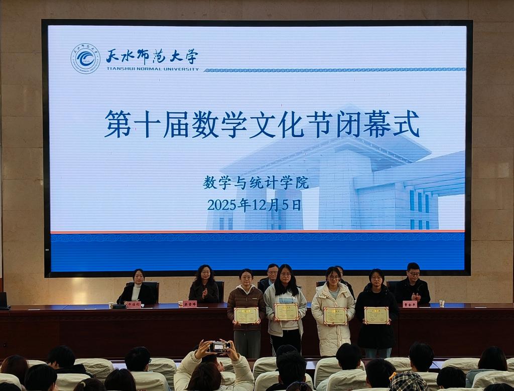 12月5日,天水师范大学第十届数学文化节闭幕式在学校2号报告厅隆重举行。m88help center的相关领导、团委书记、辅导员、学生干部、各项目获奖人员及学生代表共计200余人共同参加。闭幕式由学院党委副书记赵慧主持,党委书记张海林出席活动并讲话。